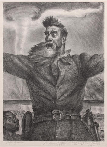 The Collection featured 14 of the 19 lithographs that Grant Wood produced, includingJuly Fifteenth, 1938, which sold for $7,500 and Sultry Night, 1939, a record $16,250; Bellows' 1923 lithograph, Billy Sunday, $17,500; Curry’s John Brown,1939, $5,625!