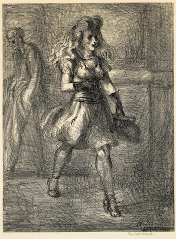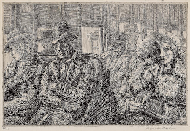By Chelsea DeLayBorn in Paris on March 4, 1898, Reginald Marsh was the progeny of two talented artists: Fred Dana Marsh, a painter specializing in industrial scenes, and Alice Randall, a painter of miniatures.(1) Two years after the artist’s birth, the Marsh family decided to leave France for America, settling in Nutley, New Jersey. Growing up, Reginald had a well-to-do education afforded to him on behalf of a wealthy grandfather, who paid the artist’s tuition to Yale. Marsh embraced the collegiate lifestyle and an artistic direction while working on one of the student publications, Yale Record, where he met lifelong friend William Benton. After graduating from Yale in 1920, Marsh moved to New York, where he studied at the Art Students League; he gained an impressive amount of experience painting and drawing under an impressive faculty of instructors, including John Sloan, George Bridgeman, George Luks, and most importantly, Kenneth Hays Miller.
