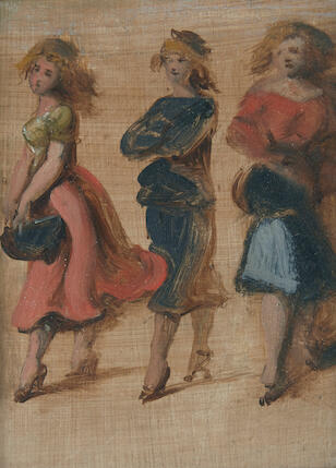 THREE WOMEN AT THE BEACH AND STREET SCENE (A DOUBLE-SIDED PAINTING)