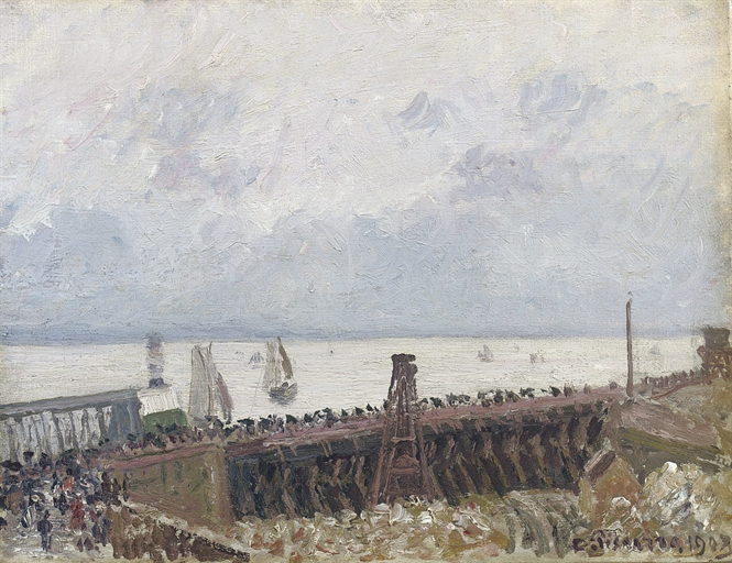 Of the many notable paintings that Pissarro made in and around Pontoise in the years 1872 and 1873, Le Pont de chemin de fer, Pontoise, remains a stand-out. Paintings of this period have been called the most purely Impressionist of Pissarro's entire oeuvre, and here the artist used mixtures of pure color to achieve a carefully composed landscape with luxurious qualities of light. Pissarro's chosen view takes in the river Oise, as seen from just below the town of Pontoise, with the railway bridge visible in the near foreground. Rather than painting the modern railway as an imposition upon the quaint and verdant landscape, Pissarro has subtly integrated the iron bridge and its traffic into the surroundings, so that it becomes a landscape feature seen fully within the context of the enduring natural world.