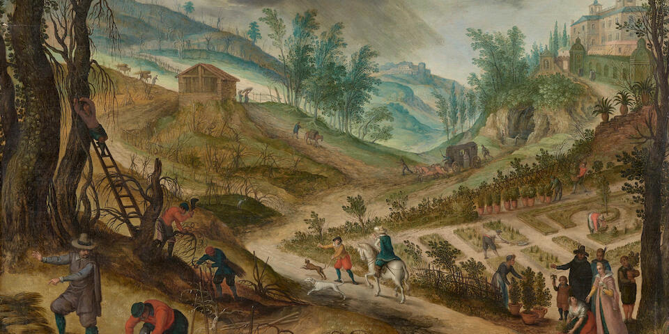 Lisa Greaves, Head of Bonhams' Old Master Painting Department, commented: "Allegory of the months of March and April, with the Villa Medici most likely formed part of six paintings, each illustrating two consecutive months of the year, which were acquired by William Smith in Rome in 1626, on behalf of Thomas Howard, 2nd Earl of Arundel. Their imagery derived from the calendars of medieval Books of Hours in which the evolving year was captured in changing seasonal activities of both agricultural labourers and their leisured masters. The work in our Bonhams sale is particularly impressive, capturing the turning of the seasons in a way that almost transports you to a past time outside the Villa Medici."