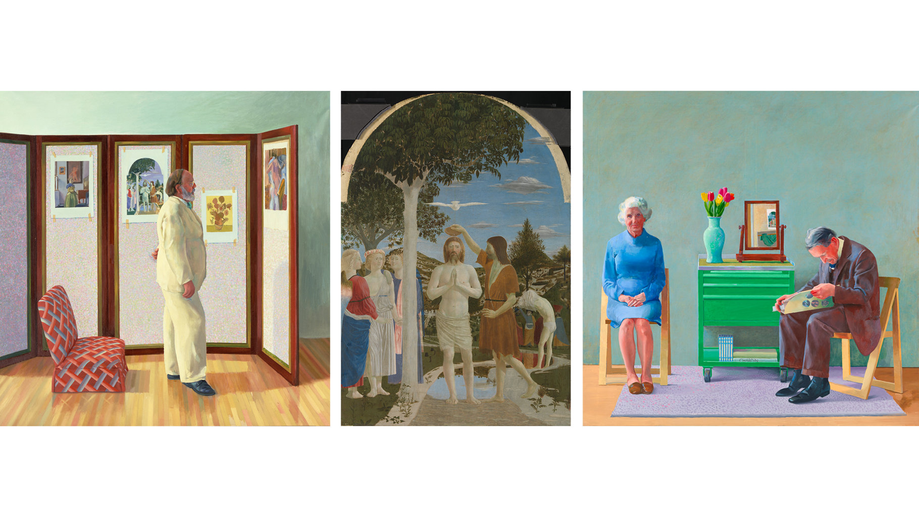 Two masterpieces by David Hockney (born 1937) that feature reproductions of Piero della Francesca’s The Baptism of Christ (probably about 1437–45) will go on display at the National Gallery alongside the original Renaissance painting from 8 August until 27 October 2024.