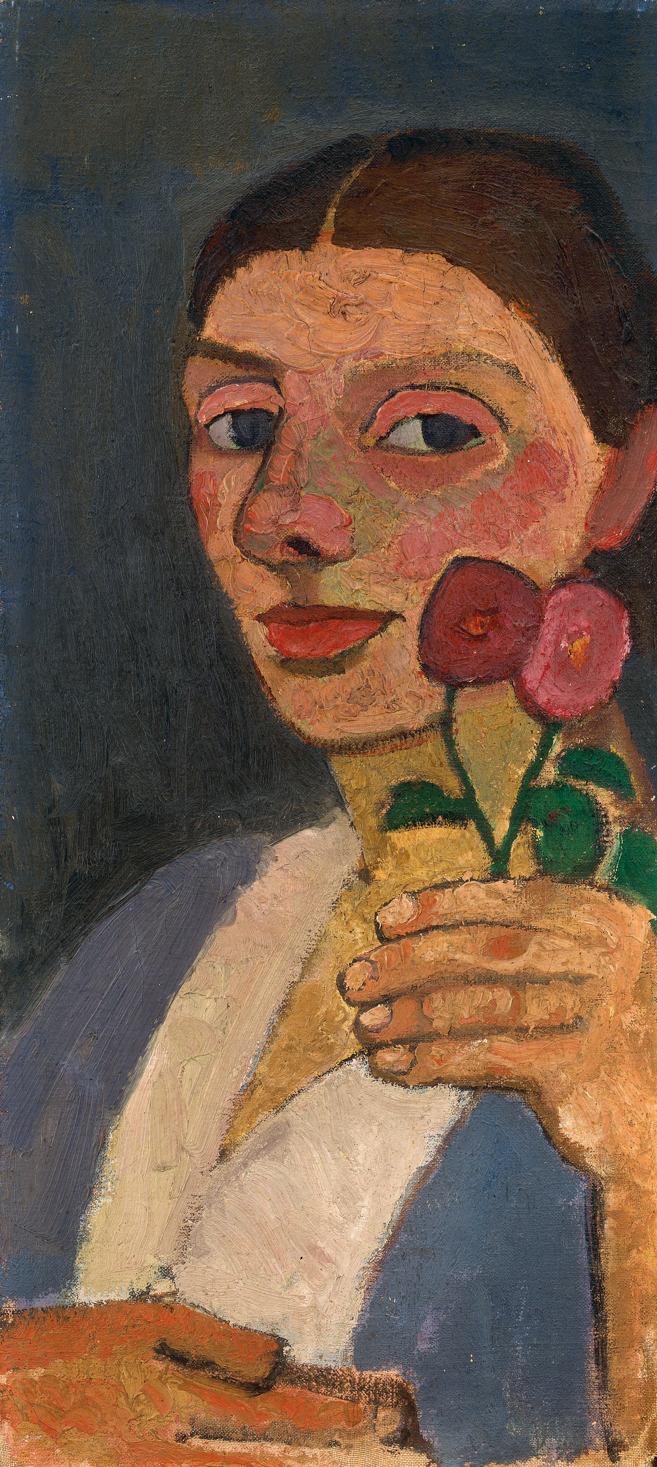 Paula Modersohn-Becker. Self-Portrait with Two Flowers in Her Raised Left Hand, 1907. Jointly owned by The Museum of Modern Art, New York, Gift of Debra and Leon Black, and Neue Galerie New York, Gift of Jo Carole and Ronald S. Lauder.