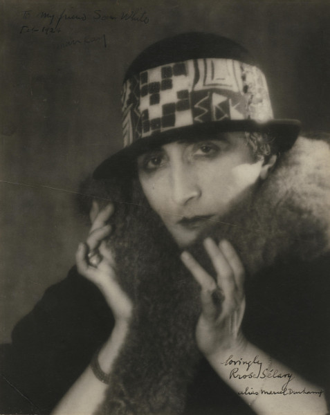 Man Ray (1890 –1976), Marcel Duchamp as Rrose Sélavy, c. 1920-1921, Gelatin silver print, 1/2 x 6 13/16 in, The Samuel S. White 3rd and Vera White Collection, 1957, 1957-49-1. © Man Ray Trust / Artists Rights Society ARS), New York / ADAGP, Paris.