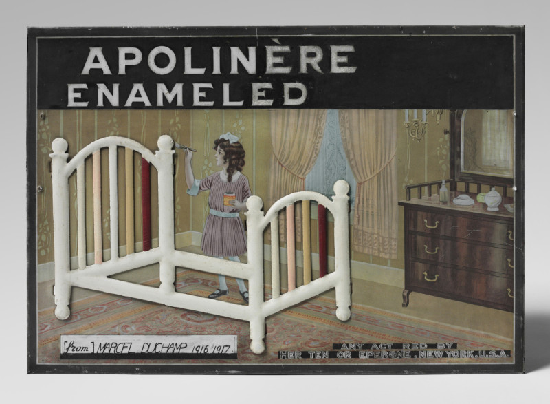 In 1912, Duchamp began to question his occupation and, remarkably for a young artist who was having his first brush with fame, decided to abandon the craft of oil painting to imagine more independent ways of being an artist. This led to the creation of his magnum opus, the monumental painting on glass titled The Bride Stripped Bare by Her Bachelors, Even (The Large Glass) (1915–23). One section of the exhibition will offer a rare opportunity to study the full range of materials and approaches that Duchamp employed in his precise planning and execution of The Large Glass. The exhibition will also look at the invention of the readymades through many of the early examples that remain extant, including With Hidden Noise (1916), Apolinère Enameled (1916–17), and one of the best-known images of the 20th century: L.H.O.O.Q. (1919), Duchamp’s irreverent defacement of a reproduction of Leonardo da Vinci’s Mona Lisa with added moustache, beard, and a vulgar phonetic pun.