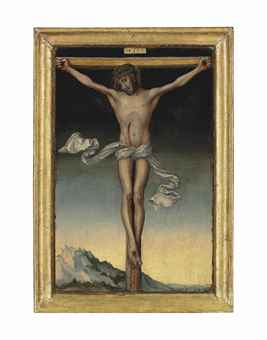 Christ on the Cross is a unique, intimate depiction of this subject by Lucas Cranach the Elder (1472-1553) (Pr.£1,137,075($1,729,491)). This poignant work seamlessly blends extreme pictorial refinement with a heightened sense of pathos.