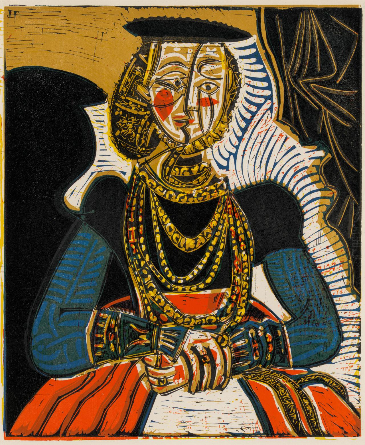 Picasso’s final years, during which he transformed the compositions of Old Masters from Rembrandt to Cranach to Manet, are represented by linocuts such as